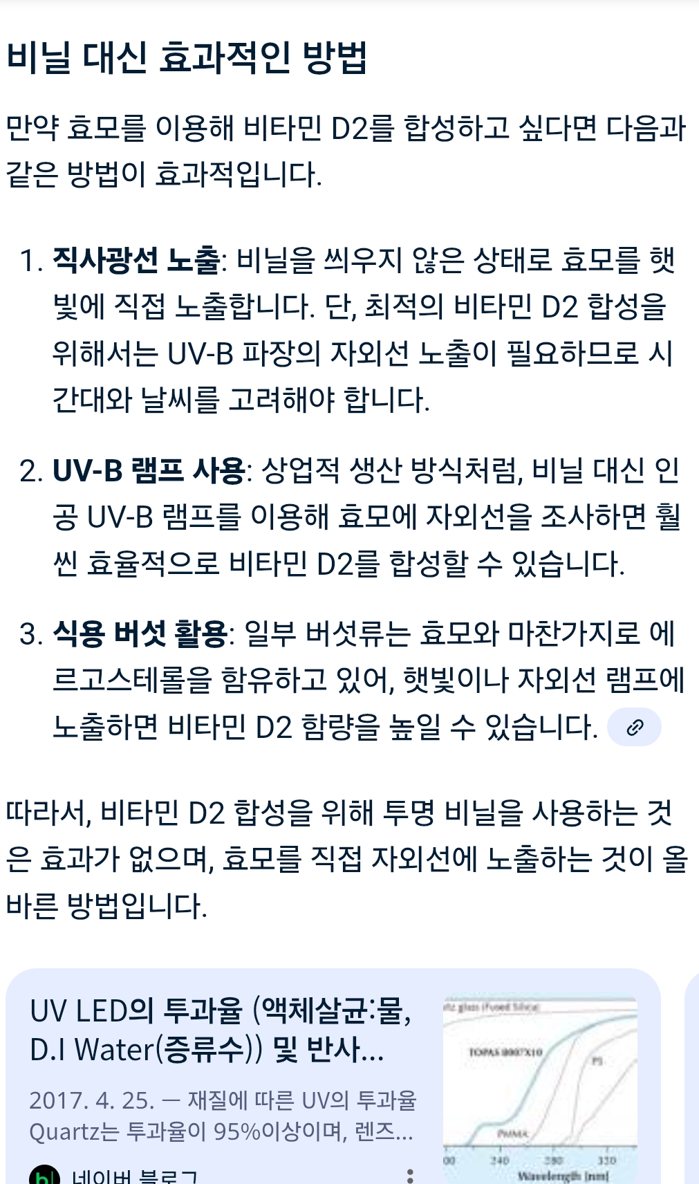 많이 함유 ㅡ햇빛이나, 인공 ubㅡb램프를 이용해서